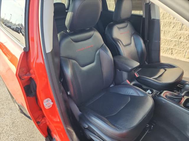 Heated Leather Seats Bluetooth iPod/MP3 Input Satellite Radio Aluminum Wheels ENGINE: 2.4L I4 ZERO EVAP M-AIR W/ESS... TRANSMISSION: 9-SPEED 9HP48 AUTOMATIC... LEATHER INTERIOR GROUP Back-Up Camera. <br /><br />KEY FEATURES INCLUDE<br />Leather Seats Back-Up Camera Satellite Radio iPod/MP3 Input Bluetooth Jeep Trailhawk with Spitfire Orange Clearcoat exterior and Ruby Red/Black interior features a 4 Cylinder Engine with 180 HP at 6400 RPM*. <br /><br />OPTION PACKAGES<br />4-Way Power...