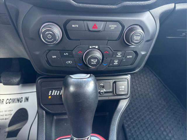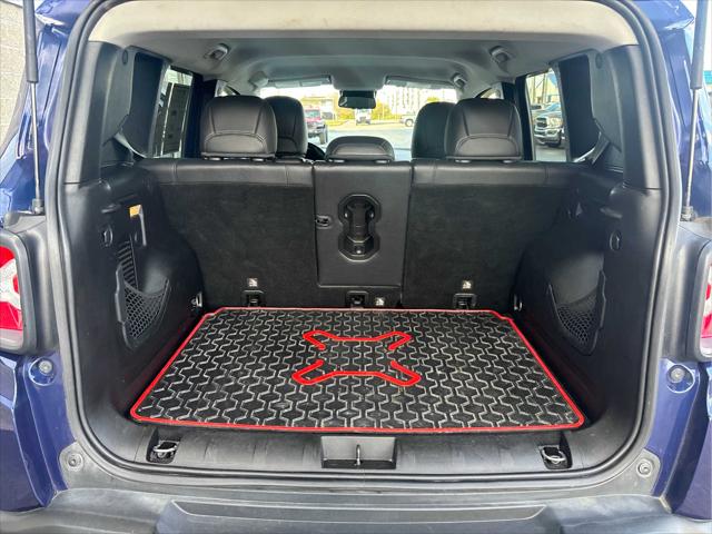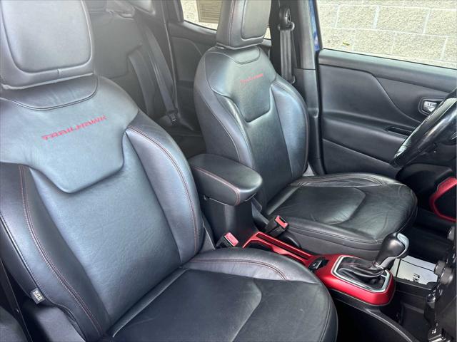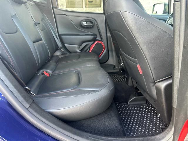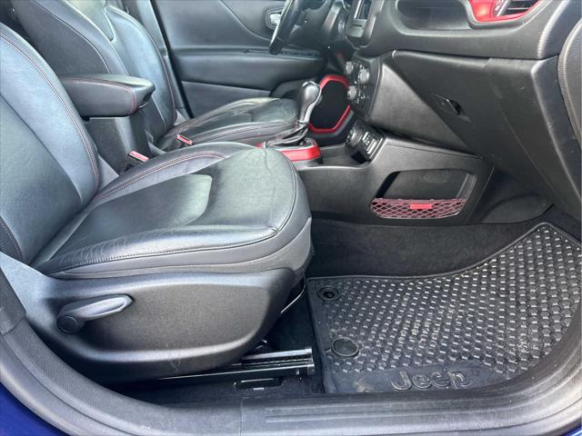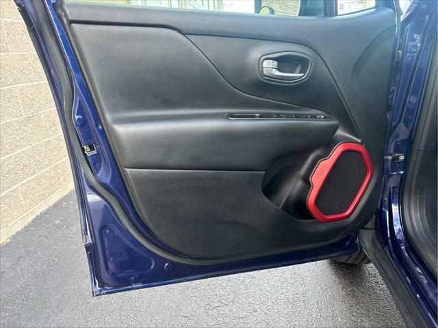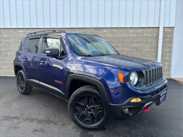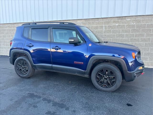 Heated Seats Bluetooth iPod/MP3 Input Satellite Radio Back-Up Camera Alloy Wheels ENGINE: 2.4L I4 ZERO EVAP M-AIR TRANSMISSION: 9-SPEED 948TE AUTOMATIC... PREMIUM LEATHER GROUP FOR TRAILHAWK PASSIVE ENTRY REMOTE START PACKAGE <br /><br />KEY FEATURES INCLUDE<br />4x4 Back-Up Camera Satellite Radio iPod/MP3 Input Bluetooth. Jeep Trailhawk with Jetset Blue exterior and Black interior features a 4 Cylinder Engine with 180 HP at 6400 RPM*. <br /><br />OPTION PACKAGES<br />PREMIUM LEATHER GROUP FOR TRAILHAWK Windshield Wiper De-Icer 40/20/40 Rear Seat w/Trunk Pass-Thru Rear View Auto Dim Mirror Heated Front Seats Heated Steering Wheel Power 8-Way Driver Manual 4-Way Passenger Seats Front Seat Back Map Pockets PASSIVE ENTRY REMOTE START PACKAGE Passive Entry/Keyless GO Remote Start System TRANSMISSION: 9-SPEED 948TE AUTOMATIC (STD) ENGINE: 2.4L I4 ZERO EVAP M-AIR (STD). <br /><br />EXPERTS ARE SAYING<br />KBB.coms review says The 2018 Jeep Renegade doesnt just look more rugged and off-road capable than its rivals in the compact SUV class it actually is.. <br /><br />PURCHASE WITH CONFIDENCE<br />CARFAX 1-Owner <br /><br />WHO WE ARE<br />Wilmington Auto Center Chrysler Dodge Jeep Ram a Better Value and Better Experience! <br /><br />Pricing analysis performed on 11/8/2024. Horsepower calculations based on trim engine configuration. Please confirm the accuracy of the included equipment by calling us prior to purchase. <br />