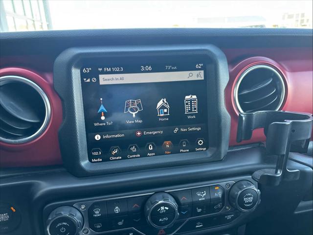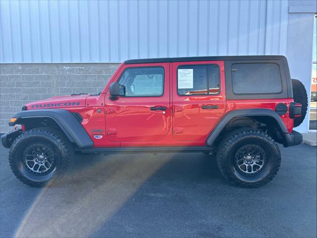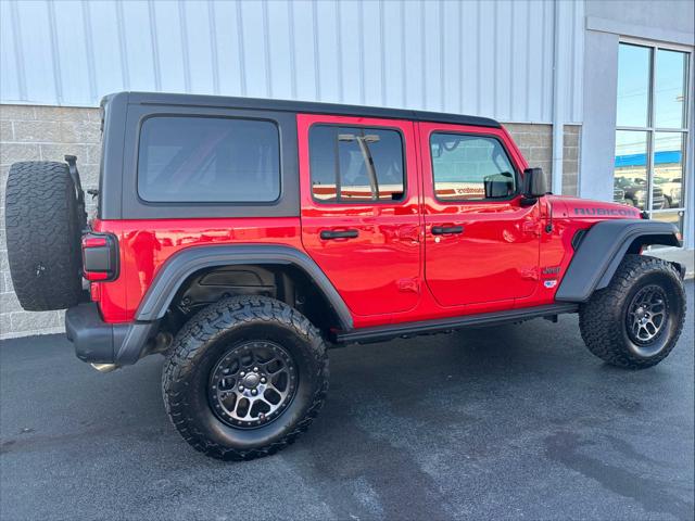 Nav System Heated Seats Premium Sound System Back-Up Camera 4x4 Hitch Satellite Radio REMOTE START SYSTEM BLACK 3-PIECE HARD TOP ENGINE: 3.6L V6 24V VVT ETORQUE UPG I... TRANSMISSION: 8-SPEED AUTOMATIC (850R... <br /><br />KEY FEATURES INCLUDE<br />Navigation 4x4 Back-Up Camera Premium Sound System Satellite Radio. Jeep Unlimited Rubicon with Firecracker Red Clearcoat exterior and Black interior features a V6 Cylinder Engine with 285 HP at 6400 RPM*. <br /><br />OPTION PACKAGES<br />TRANSMISSION: 8-SPEED AUTOMATIC (850RE) Tip Start Selec-Speed Control XTREME RECON 35 TIRE PACKAGE Tires: LT315/70R17C 113/110S Dana M210 Wide HD Tube Front Axle Wheel Flare Extensions MOPAR Tire Relocation Kit Wheels: 17 x 8 Beadlock Capable Anti-Lock 4-Wheel Disc Perf Brakes 35 Tire Suspension GVWR: 6 100 lbs MOPAR Hinge-Gate Reinforcement MOPAR Jack Spacer 4.56 Rear Axle Ratio BLACK 3-PIECE HARD TOP Freedom Panel Storage Bag Rear Window Defroster Rear Window Wiper/Washer No Soft Top LED LIGHTING GROUP Daytime Running Lamps LED Accents Front LED Fog Lamps LED Premium Reflector Headlamps LED Taillamps COLD WEATHER GROUP Heated Steering Wheel Heated Front Seats TRAILER TOW & HD ELECTRICAL GROUP Class II Receiver Hitch 700 Amp Maintenance Free Battery 7 & 4 Pin Wiring Harness 240 Amp Alternator Auxiliary Switches MOPAR HD ROCK SLIDER W/STEP ASSIST ENGINE: 3.6L V6 24V VVT ETORQUE UPG I 600 Amp Maintenance Free Battery 48V Belt Starter Generator Delete Alternator REMOTE START SYSTEM. <br /><br />A GREAT TIME TO BUY<br />This Wrangler is priced $4 600 below Kelley Blue Book. <br /><br />SHOP WITH CONFIDENCE<br />CARFAX 1-Owner <br /><br />BUY FROM AN AWARD WINNING DEALER<br />Wilmington Auto Center Chrysler Dodge Jeep Ram a Better Value and Better Experience! <br /><br />Pricing analysis performed on 10/1/2024. Horsepower calculations based on trim engine configuration. Please confirm the accuracy of the included equipment by calling us prior to purchase. <br />