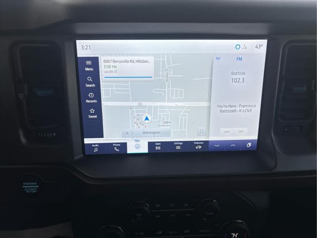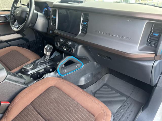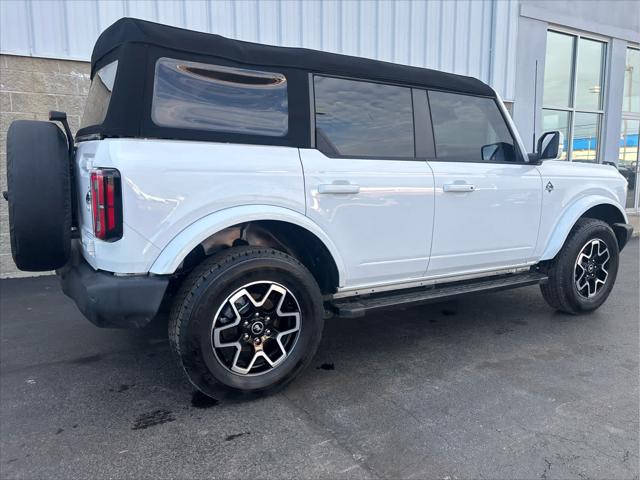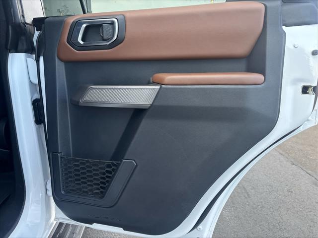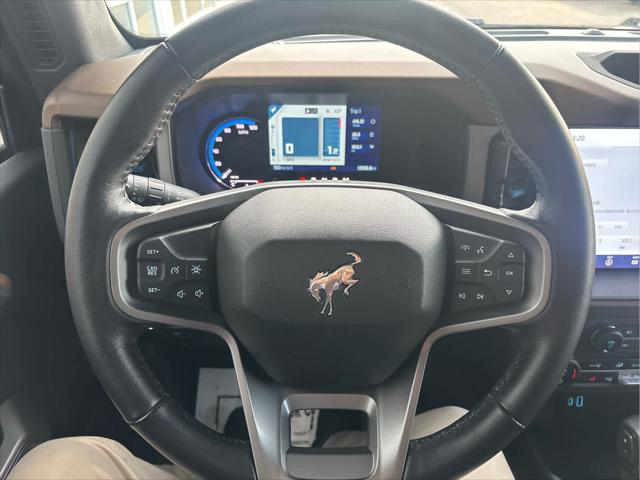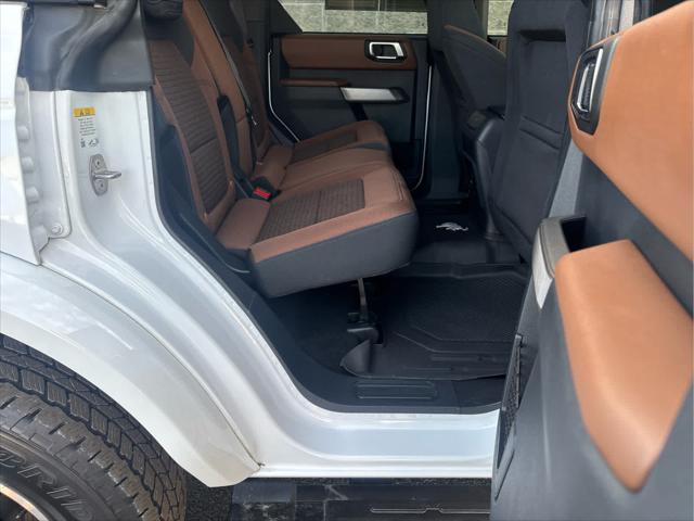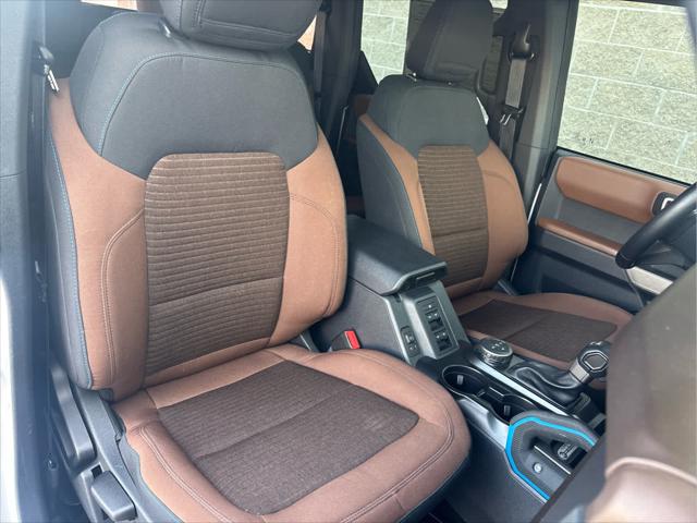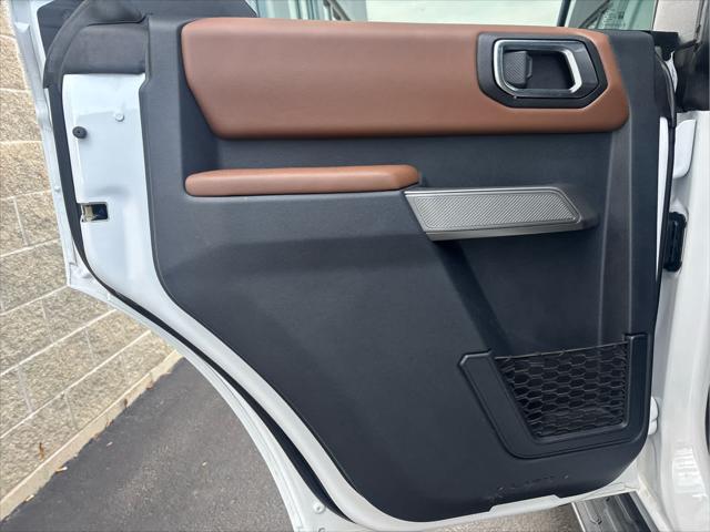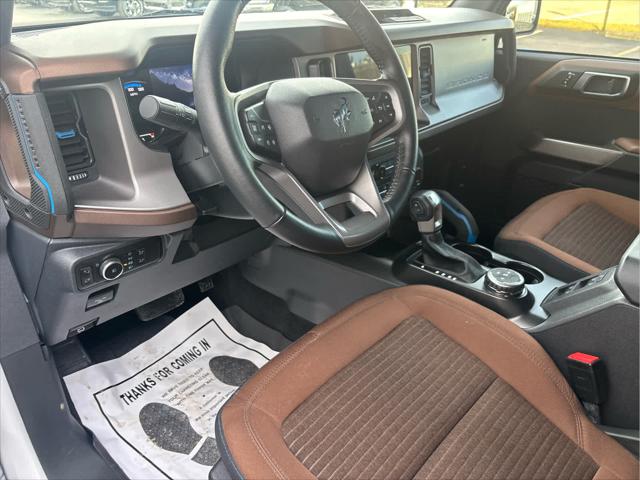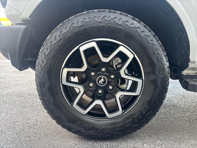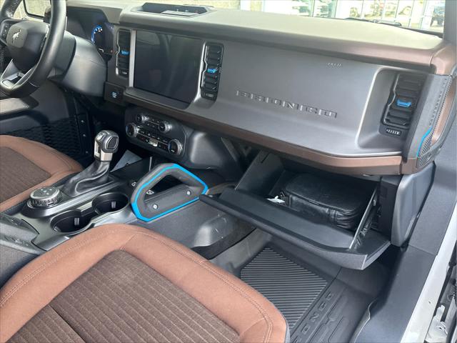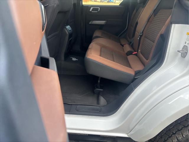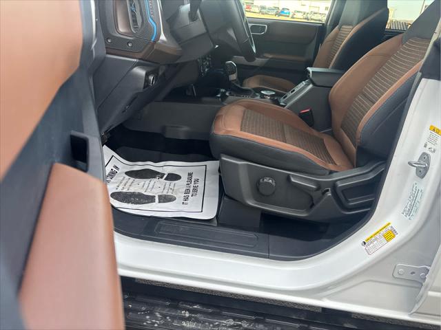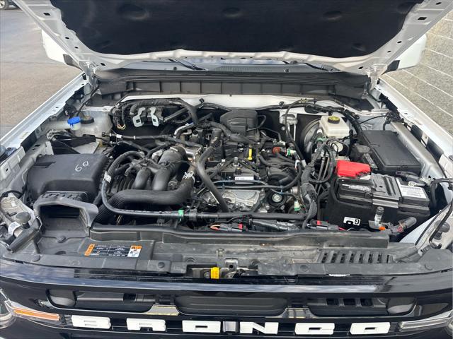 Heated Leather Seats NAV iPod/MP3 Input Satellite Radio Back-Up Camera Alloy Wheels CONNECTED BUILT-IN NAVIGATION FRONT & REAR FLOOR LINERS W/O CARPET.. TRANSMISSION: 10-SPEED AUTOMATIC EQUIPMENT GROUP 313A HIGH PACKAGE <br /><br />KEY FEATURES INCLUDE<br />Leather Seats Heated Driver Seat Back-Up Camera Satellite Radio iPod/MP3 Input Ford Outer Banks with Oxford White exterior and Roast w/Black Onyx interior features a 4 Cylinder Engine with 275 HP at 5700 RPM*. <br /><br />OPTION PACKAGES<br />12 LCD Capacitive Touchscreen w/Swipe Capability Additional Sound Deadening Information on Demand Panel Front Parking Sensors 360-Degree Camera Sideview Mirrors LED approach lamps and LED spotlight 3 years of service pinch-to-zoom capability live traffic predictive destinations and route guidance Navigation service requires SYNC4 and FordPass Connect complimentary connect service and the FordPass app (see FordPass Terms for details) Customer receives a complimentary 3-year trial of navigation services when an eligible vehicle is added to a members FordPass account Trial period begins w/new vehicle warranty start date At the end of the complimentary period access to connected navigation services will be discontinued Connected service and features depend on compatible AT&T network availability Evolving technology/cellular networks/vehicle capability may limit functionality and prevent operation of connected features FordPass App compatible w/select smartphone platforms Custom accessory pre-installed Deletes standard carpet front and rear floor mats (STD) Contains LED taillamps This is in place of signature lighting. <br /><br />A GREAT TIME TO BUY<br />Reduced from $42 933. This Bronco is priced $3 900 below Kelley Blue Book. <br /><br />BUY WITH CONFIDENCE<br />CARFAX 1-Owner <br /><br />OUR OFFERINGS<br />Wilmington Auto Center Chrysler Dodge Jeep Ram a Better Value and Better Experience! <br /><br />Pricing analysis performed on 2/12/2025. Horsepower calculations based on trim engine configuration. Please confirm the accuracy of the included equipment by calling us prior to purchase. <br />